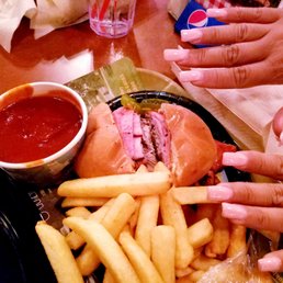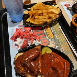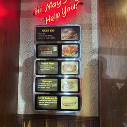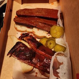 Was recommended here by locals! Both my partner and I got the burnt ends sandwich. He got fries and I got onion rings. Additionally, the tray came with pickles and a fountain drink! They have strawberry soda!!! The fries come with a spicier seasonal on top which I could have gone without. The ends were chopped as opposed to sliced which I didn't *love* but not necessarily anything to complain about. My boyfriend claims his sandwich was greasy although the thought never crossed my mind. Pricing is pretty good and the service was relatively fast! Very mom and pop type of place, hole in the wall type of place and set up very "traditionally" rather dim lighting but overall enjoyed myself! I would definitely go here again although I do not think my boyfriend.